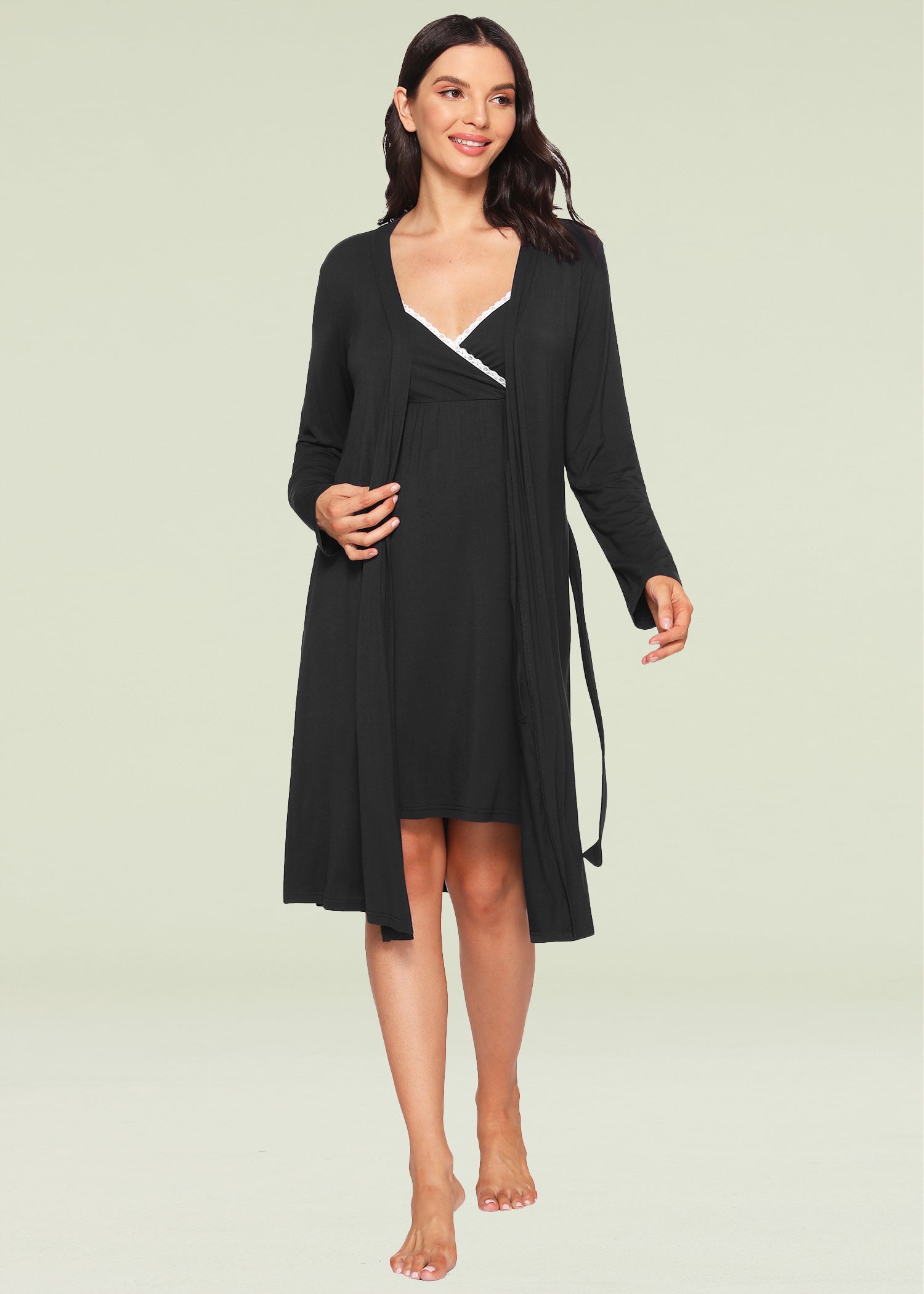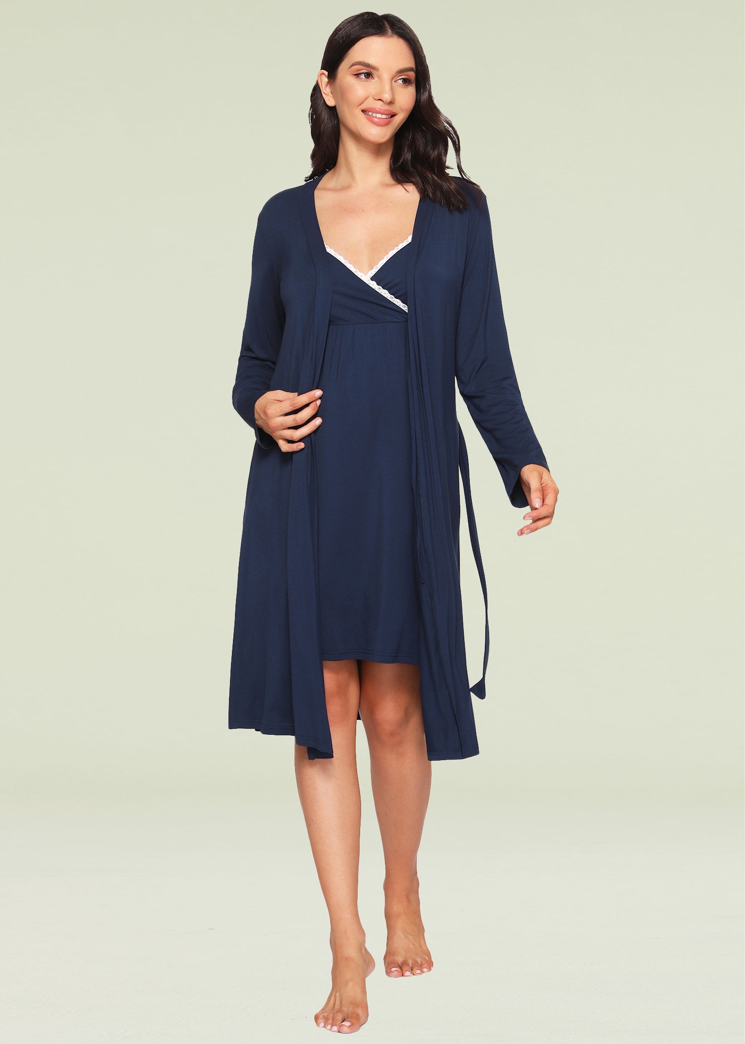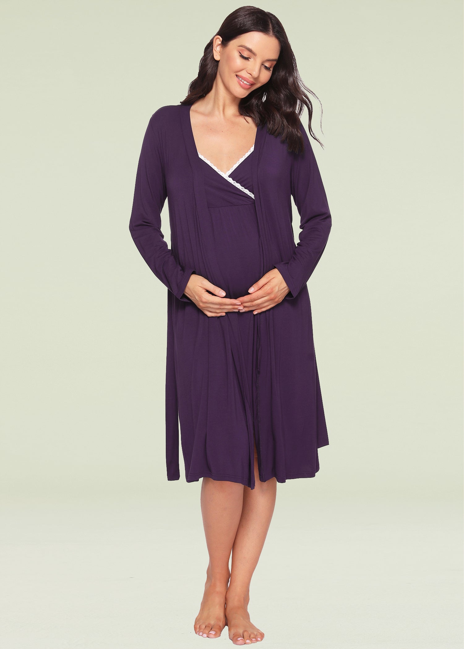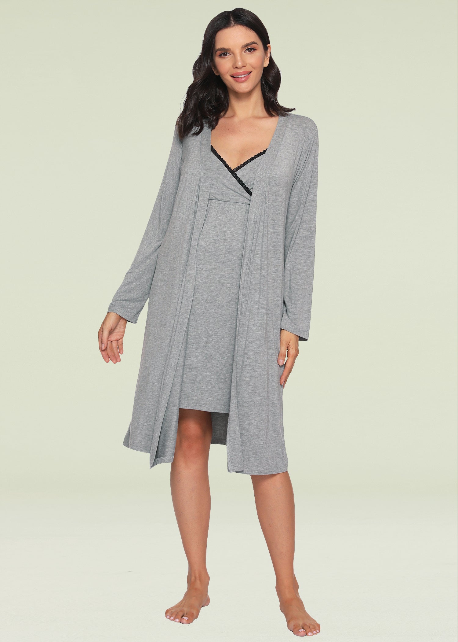 Women's Bamboo Viscose Nursing Nightgown and Robe Set