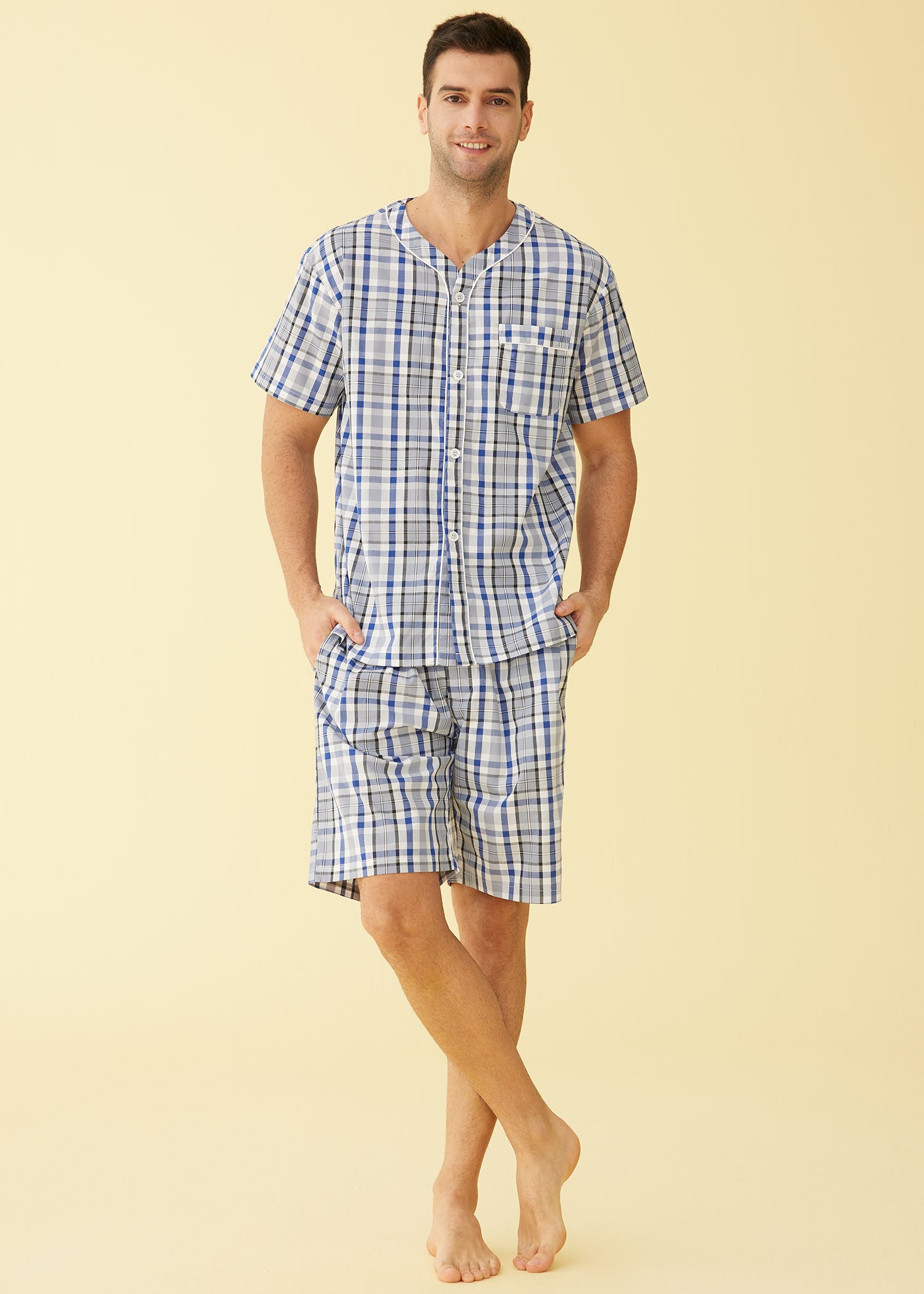 Men's Summer Cotton Pajamas Shorts Set