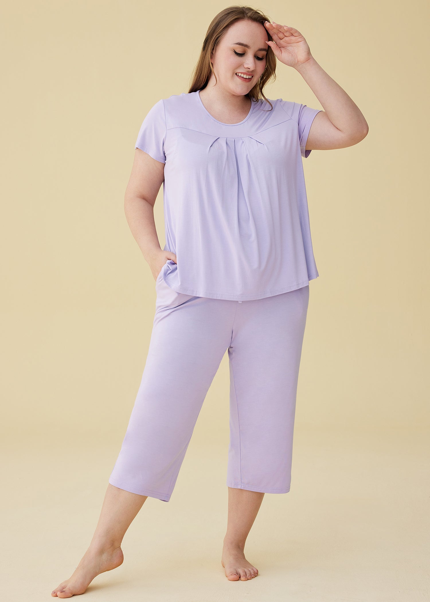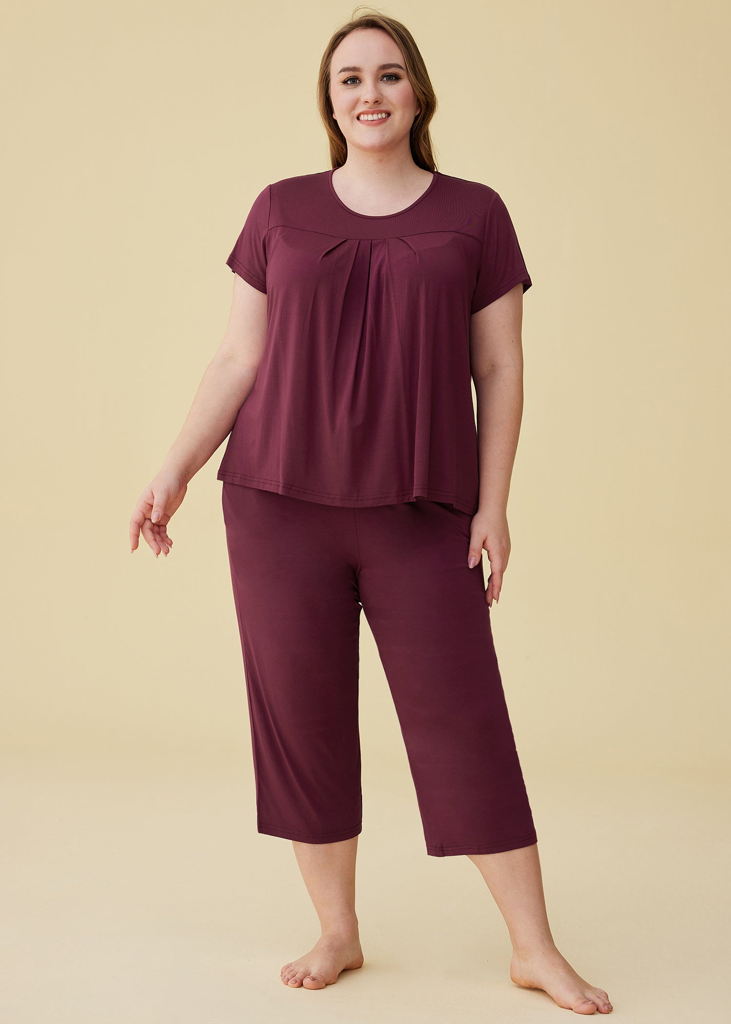 Women's Bamboo Pajamas Pleated Top and Capris Pjs Set