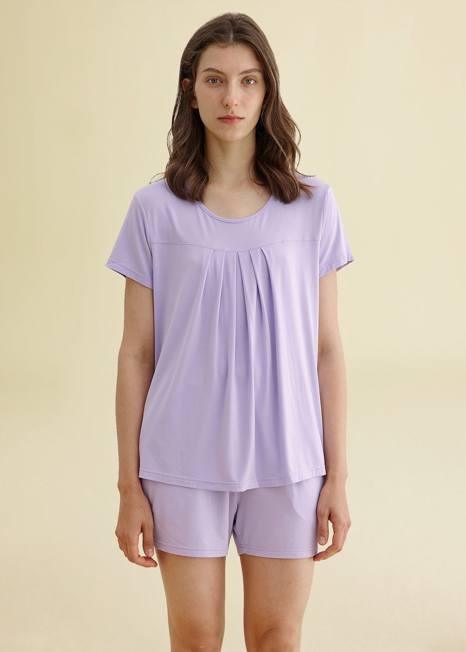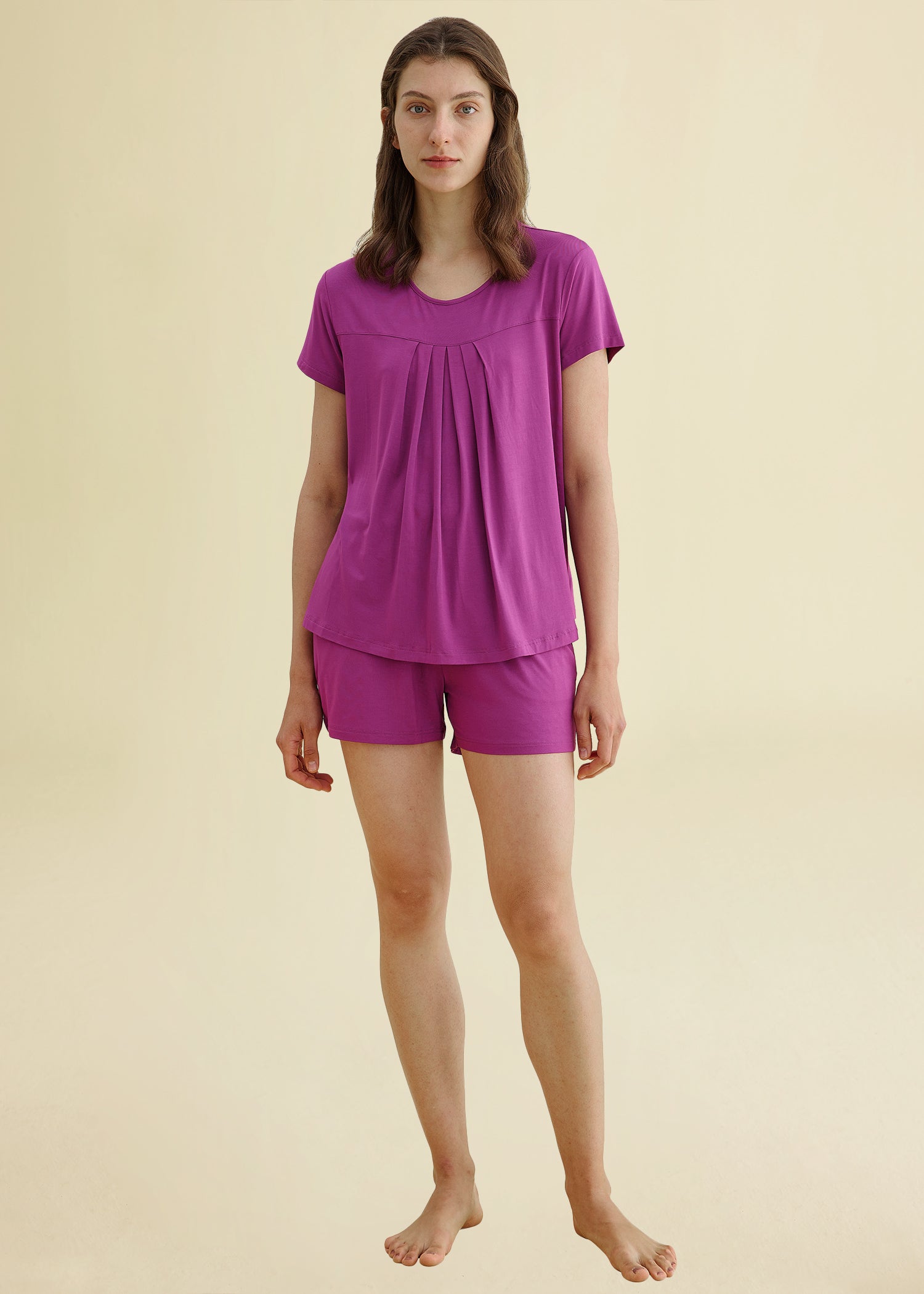 Women’s Pajamas Pleated Loungewear Top Shorts Bamboo Pjs Set