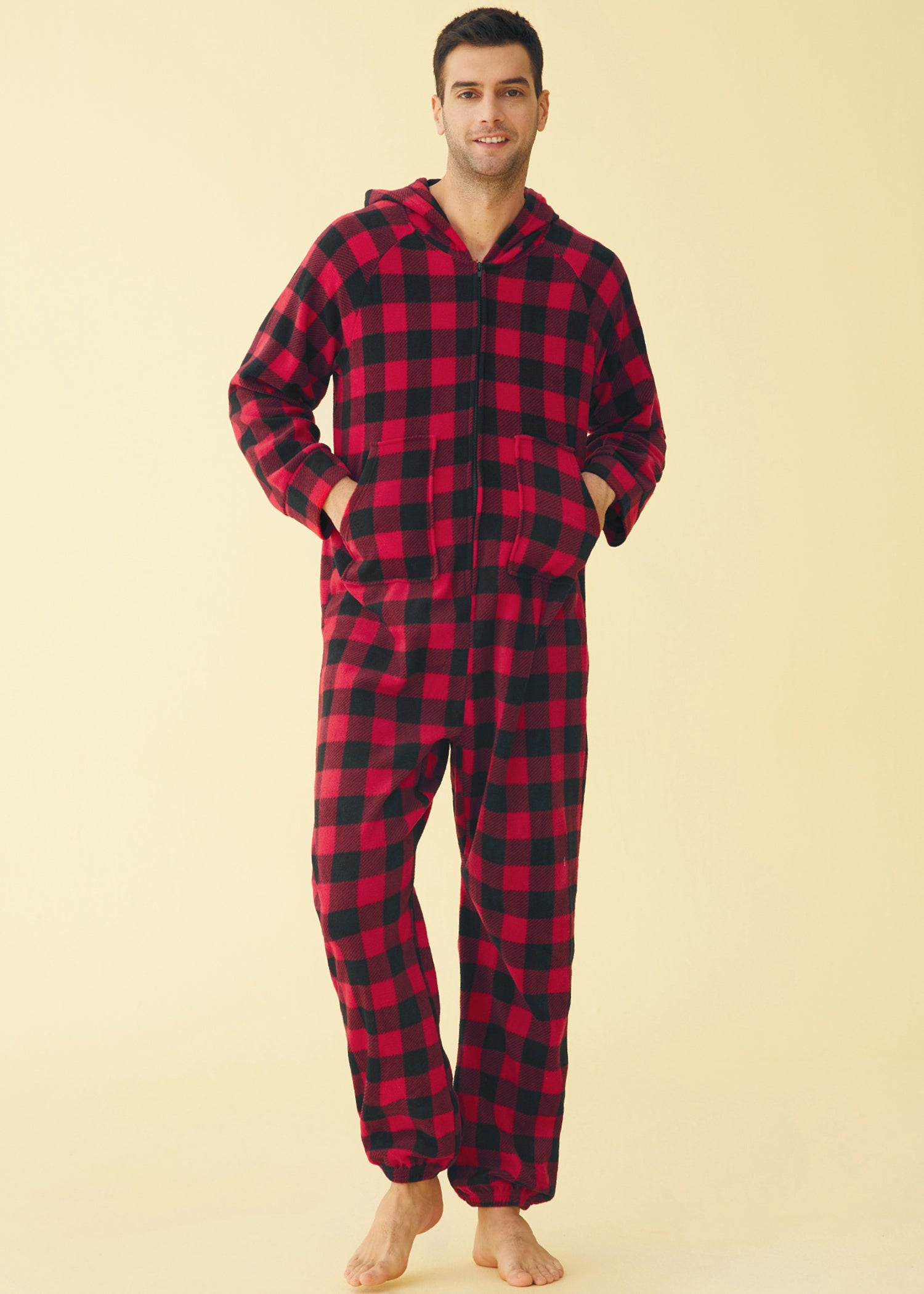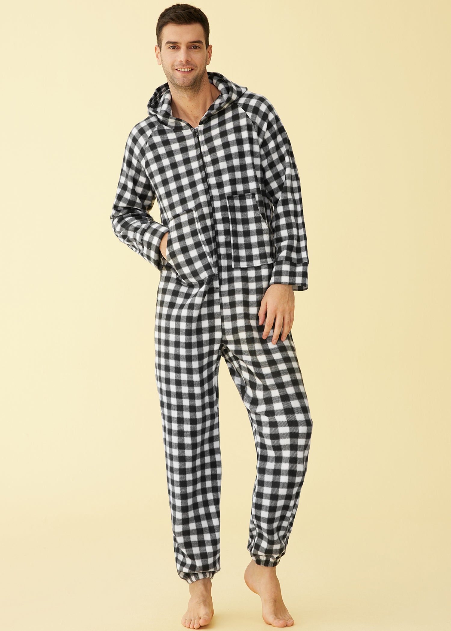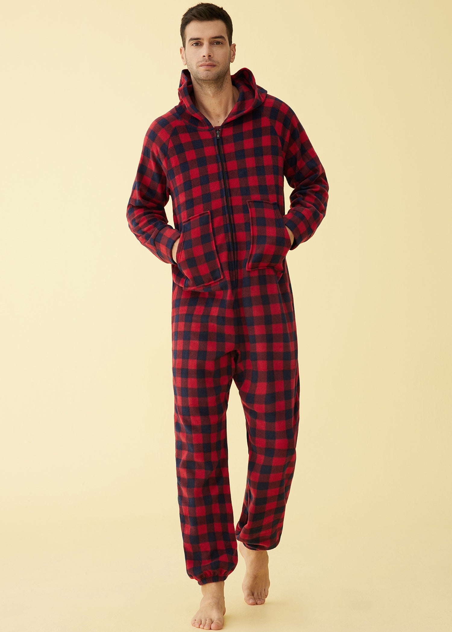 • Classic plaid onesies with elastic cuffs at the ankles, cut in generous way, relaxed fit, comfy for lounging around the house