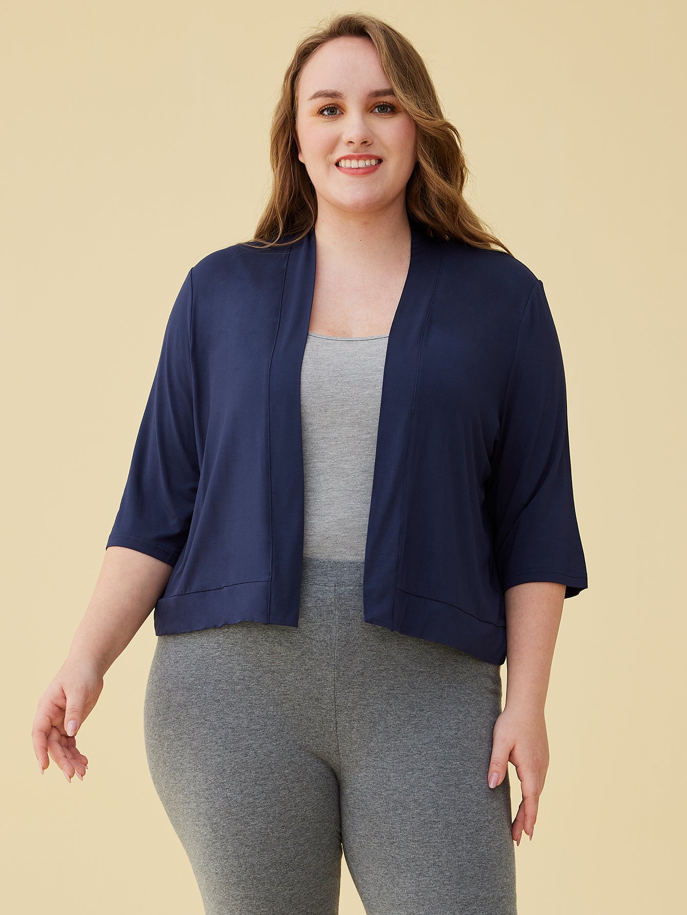 • Bamboo viscose cropped cardigan, features 3/4 sleeves, open front, waist length